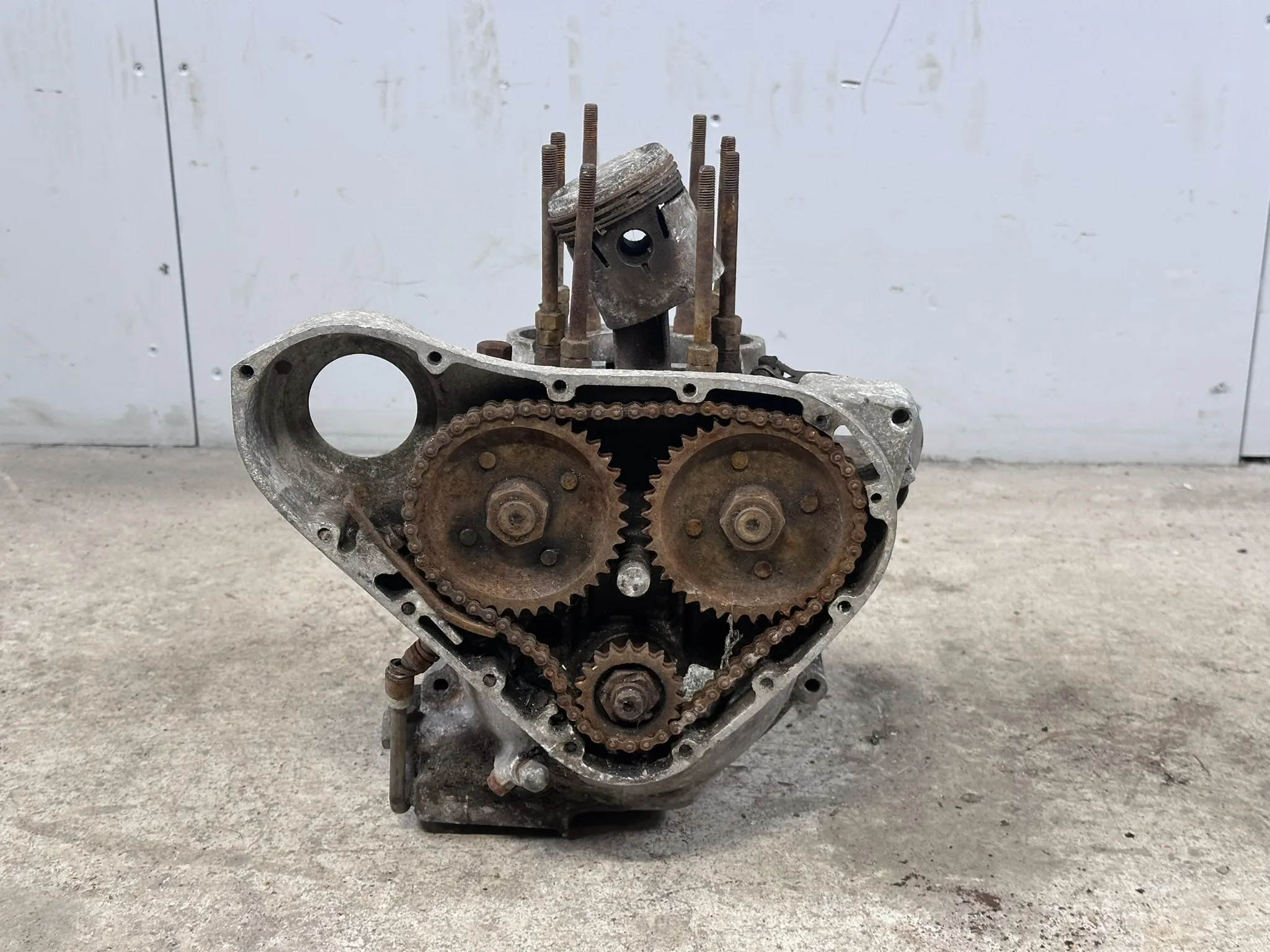 Kondition:Motor går runt, men trögt.Saknas många delar.Rost, skador, smuts m.m