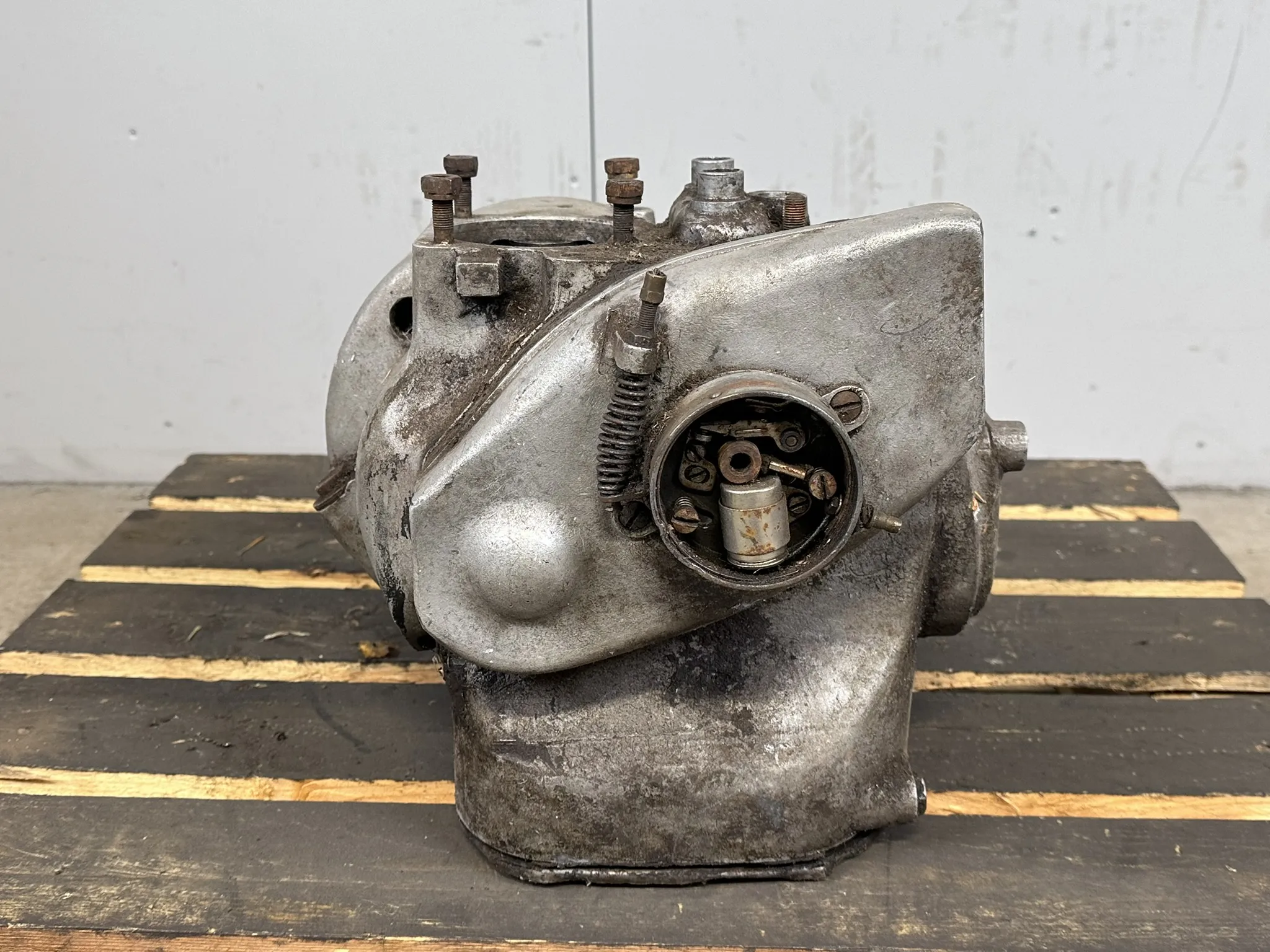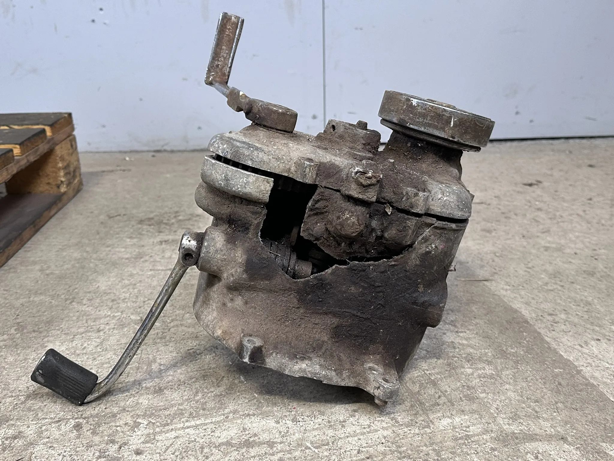 Kondition: Växellådshus rejält skadat, Motor går ej runt, Vevstake av