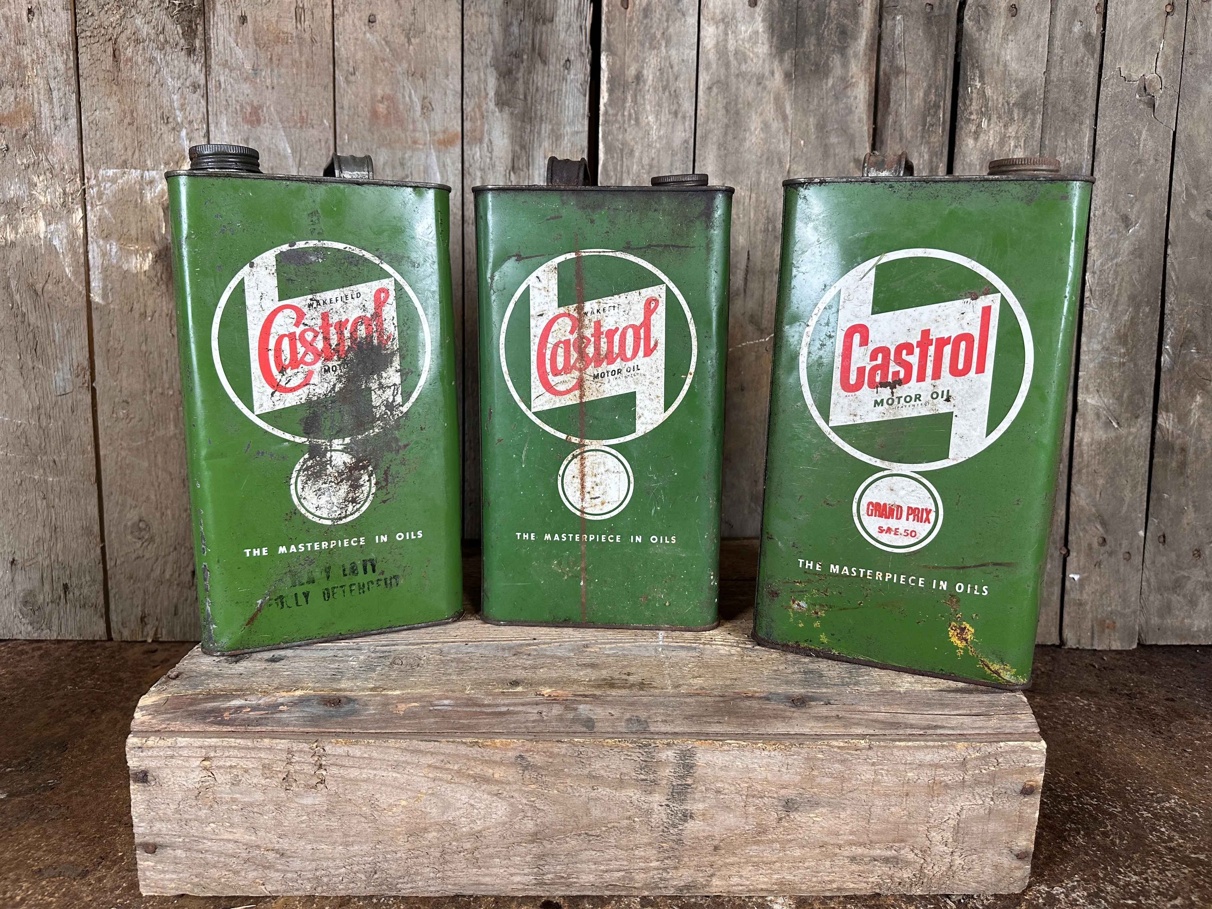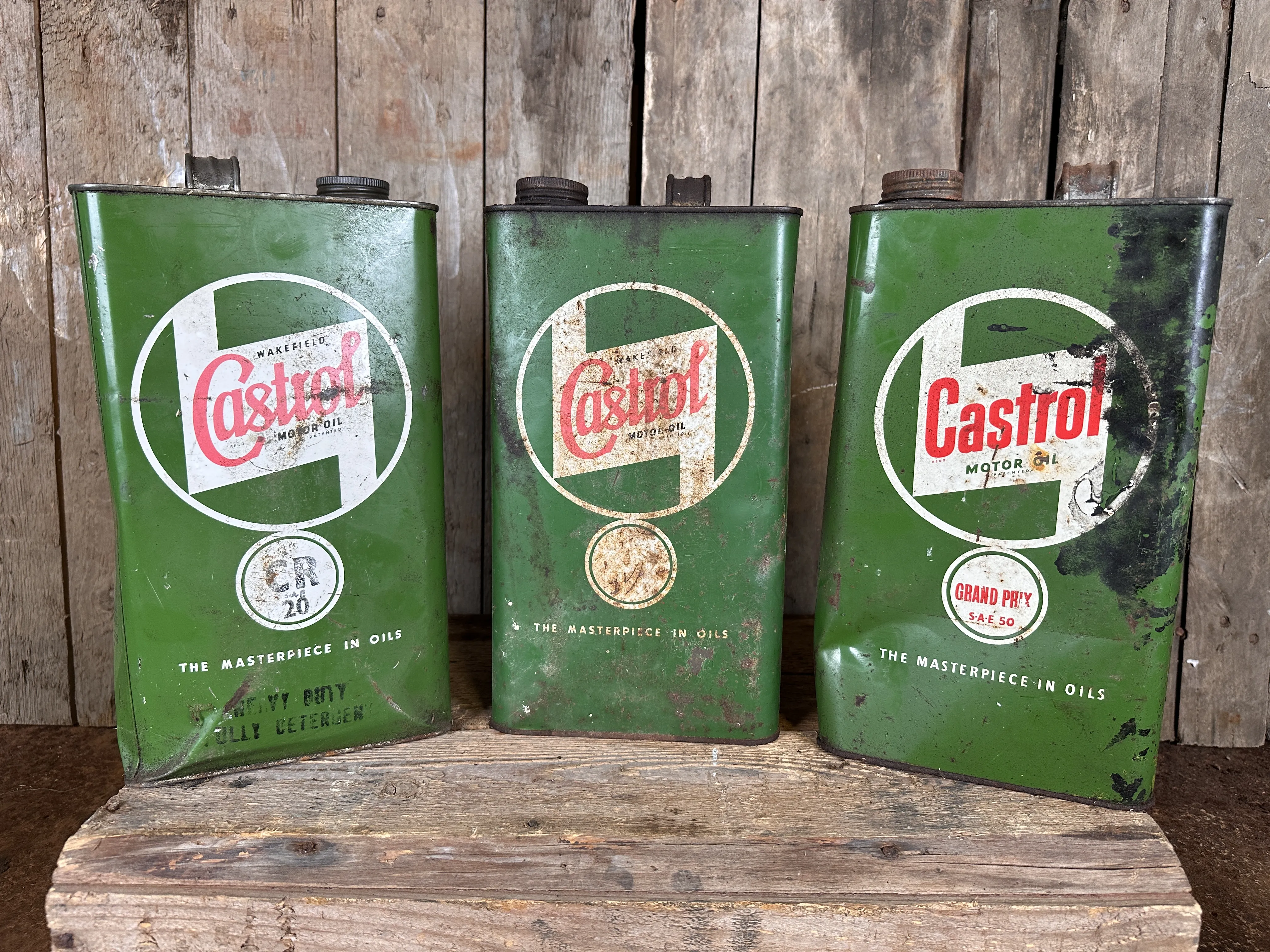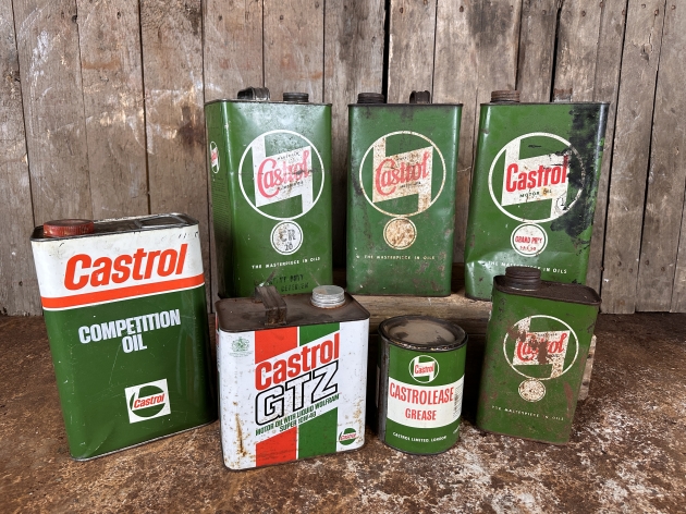 64. CASTROL, oljeburkar, 7delar, 1900-talets mitt, England