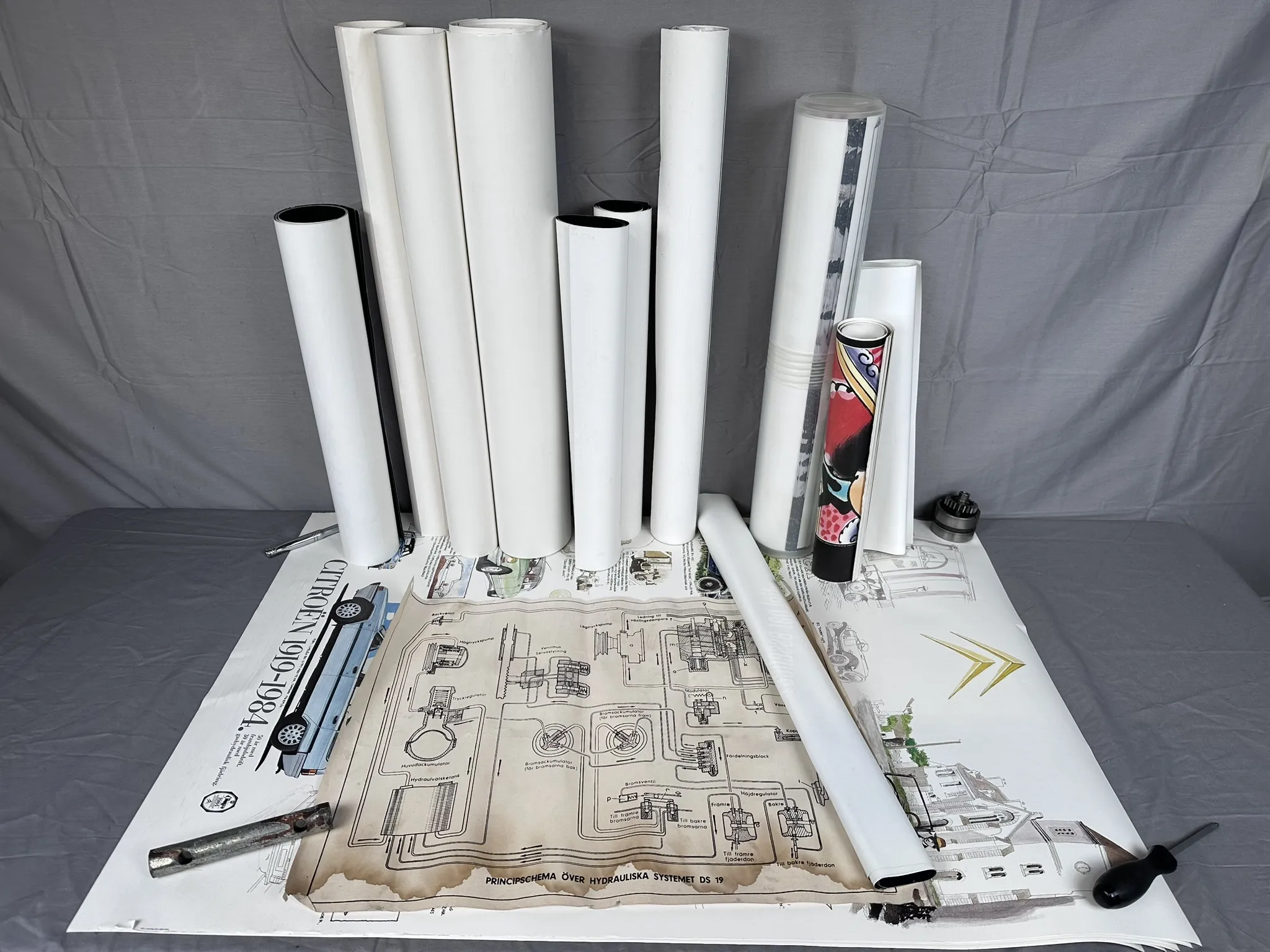 Stort parti affischer från Citroen inklusive många kopior. Mått största: 99x74cm