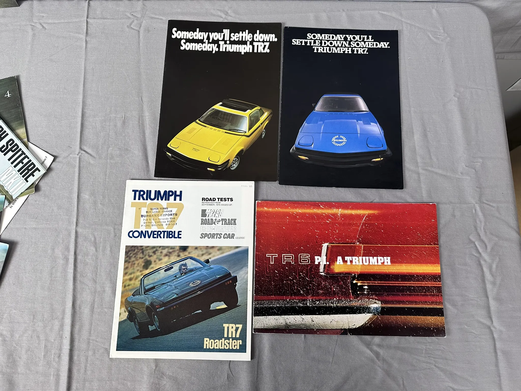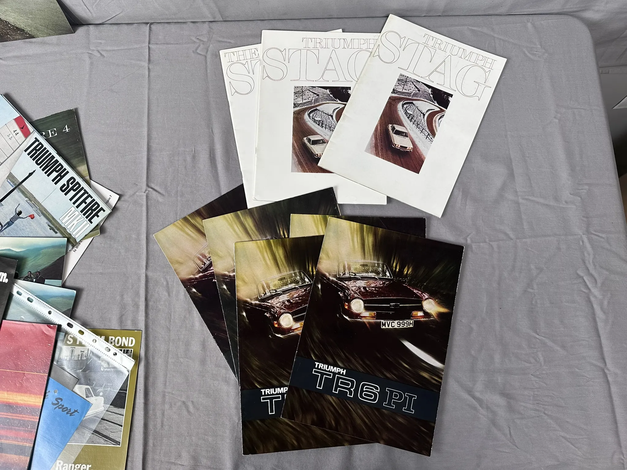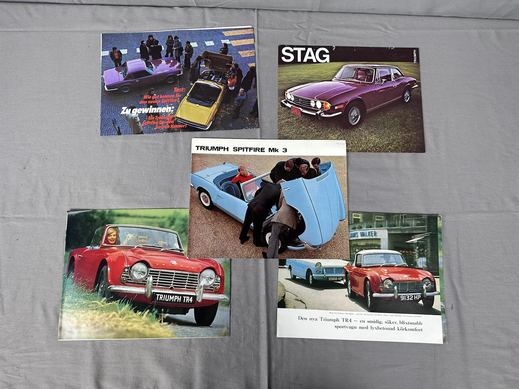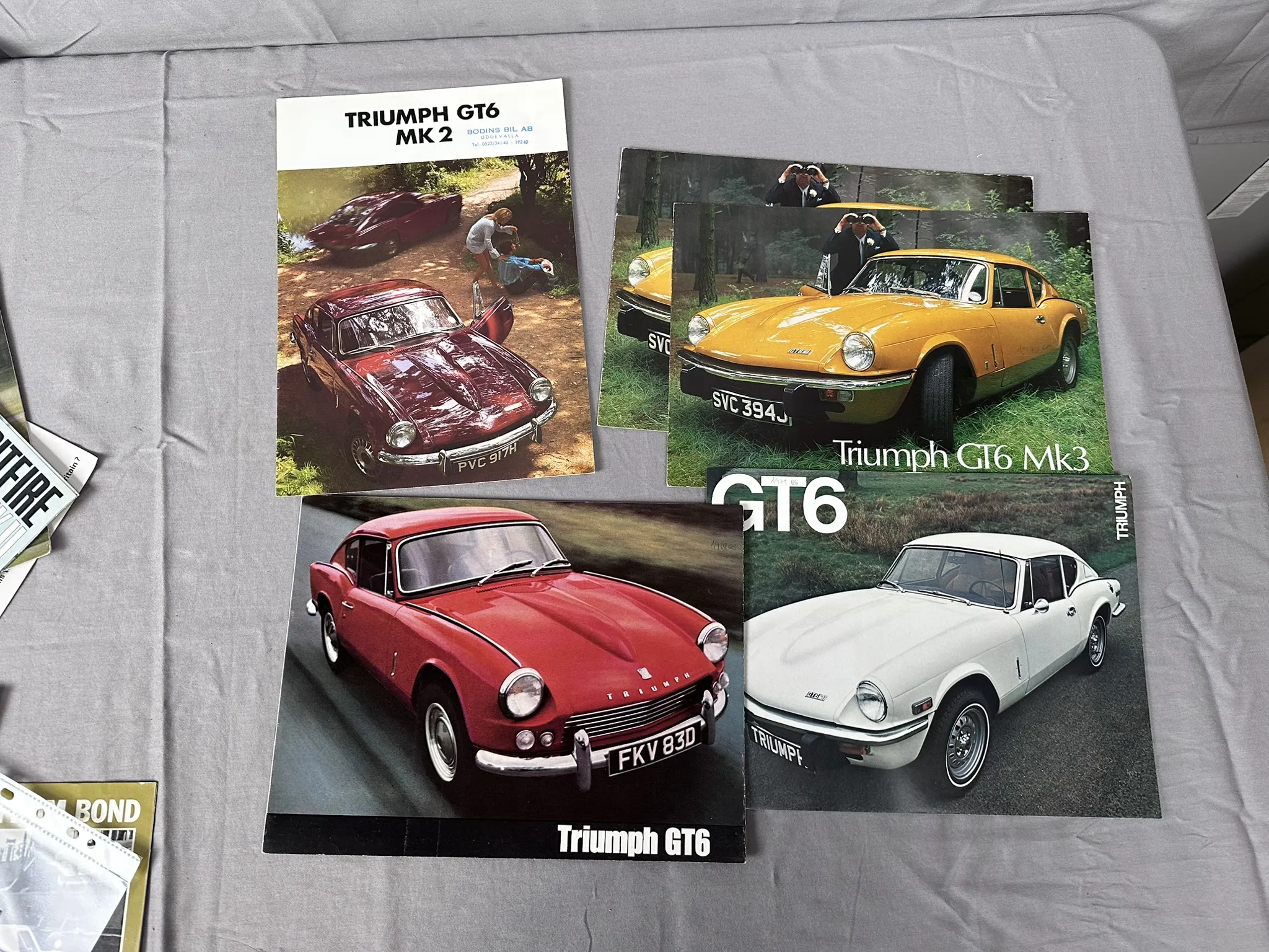 Diverse broschyrer för bland annat Bond 875 Ranger, Triumph Spitfire 4, Spitfire MK3, TR6PI m.m.