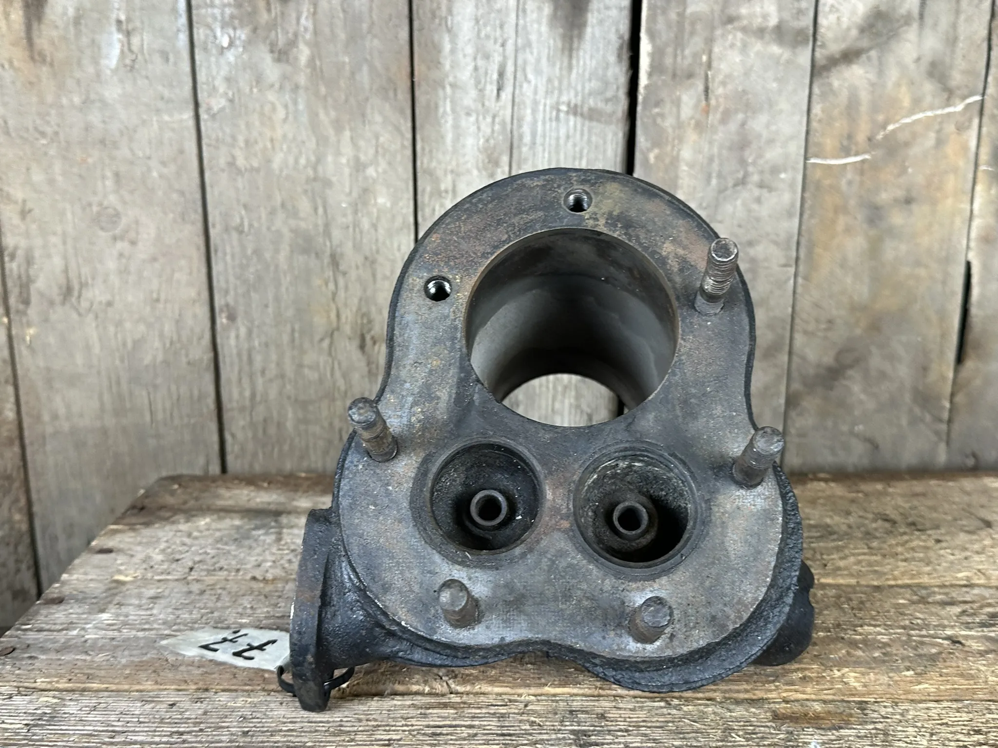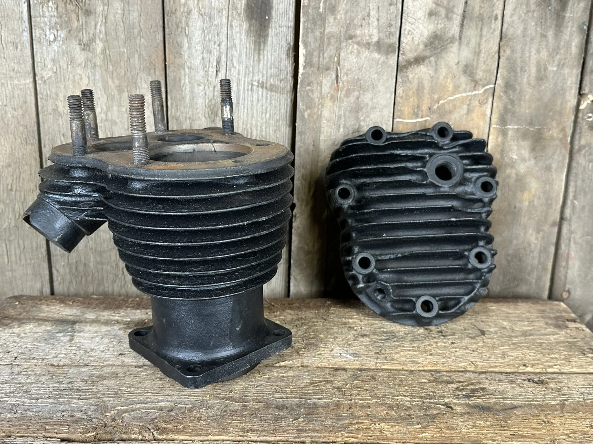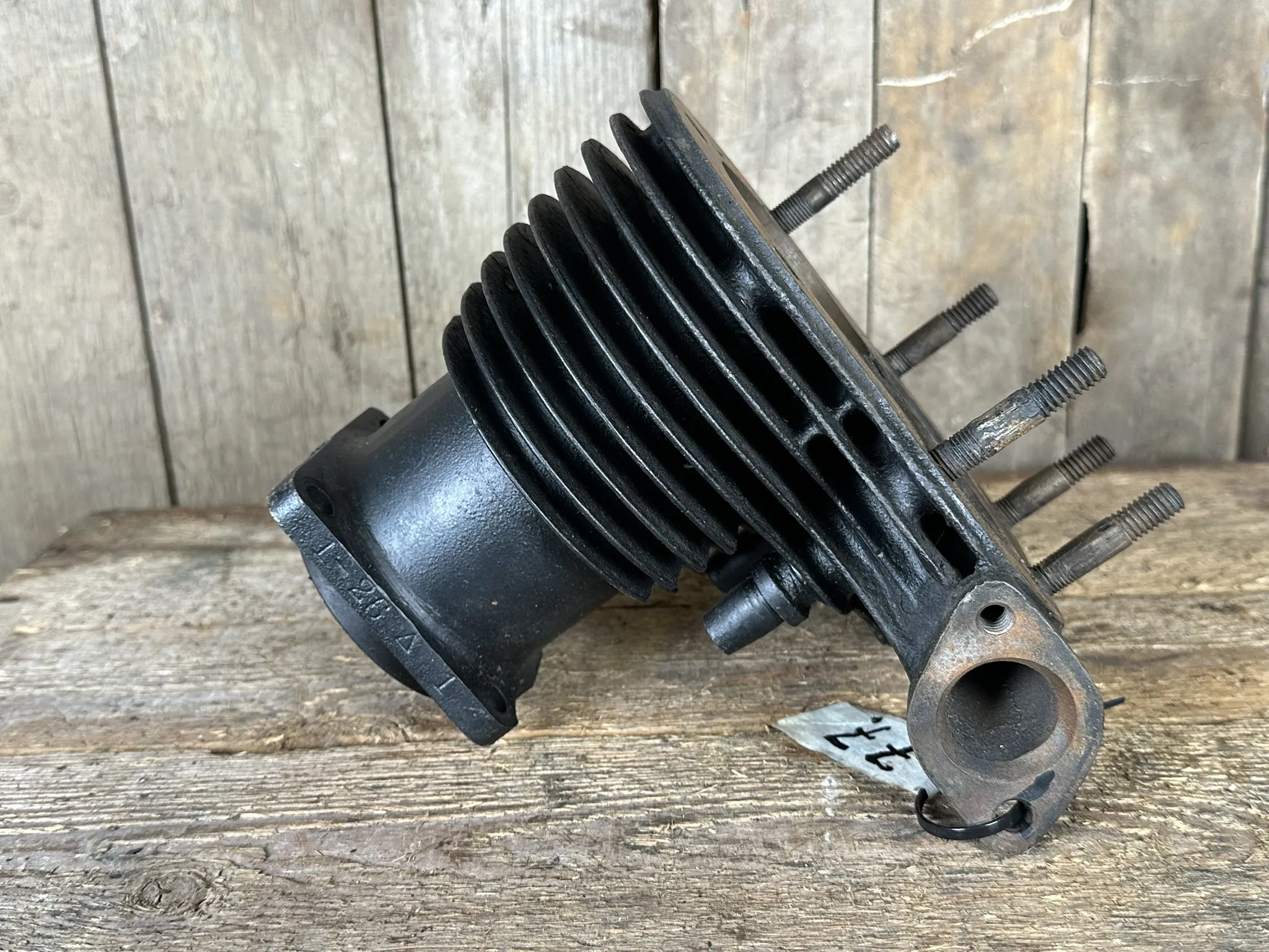 Kondition: Cylinder hel och fin i flänsar, har minimalt kolvbultsspår, borr: ca 75mm. Topp har några skadade kylflänsar.