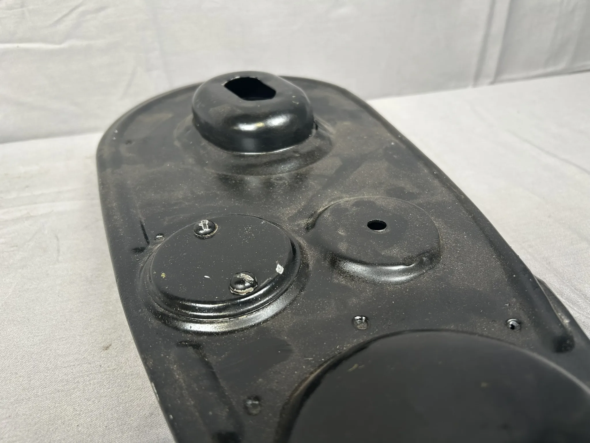 Varierande skick, flertal bucklor och gamla reparationer förekommer.