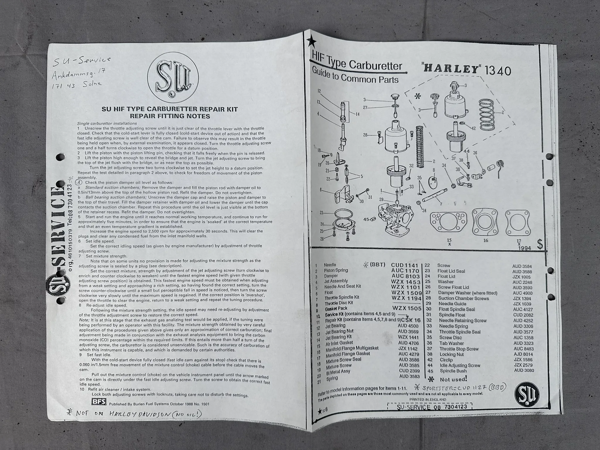 219. Harley-Davidson, SU Förgasarkit