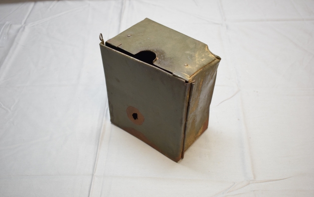 Omgjord. Spår av äldre grön lack fortfarande synlig.