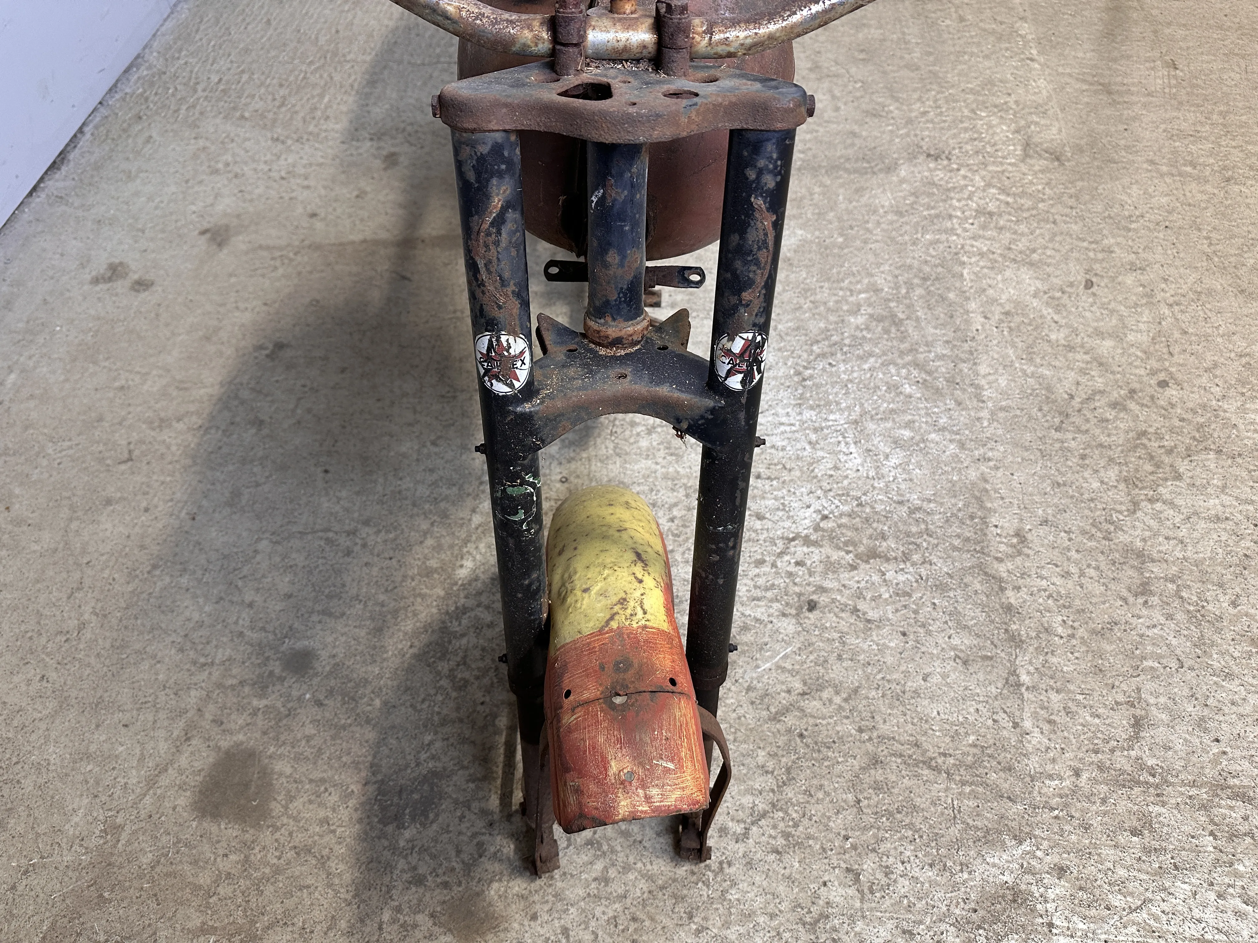bristfälligt lackerad, Tank bucklig/rostig