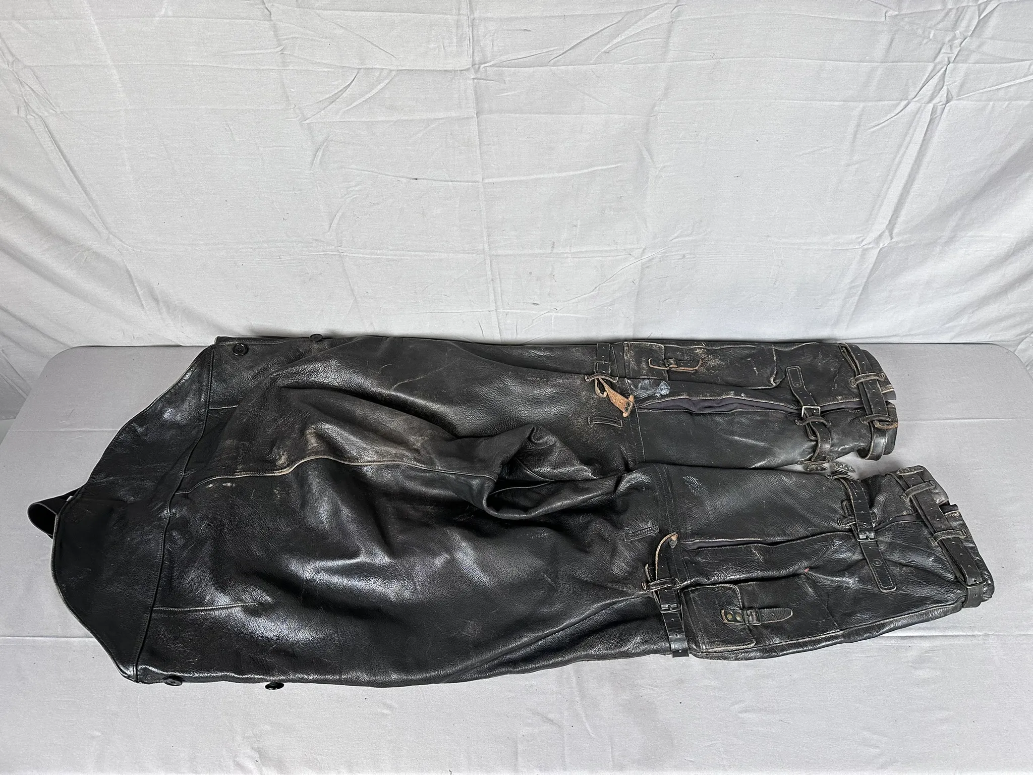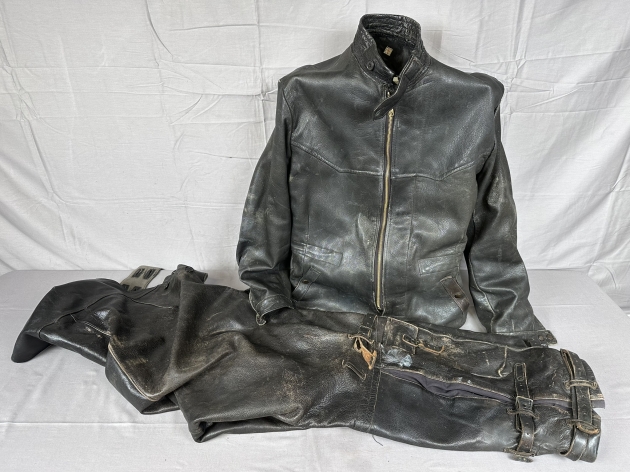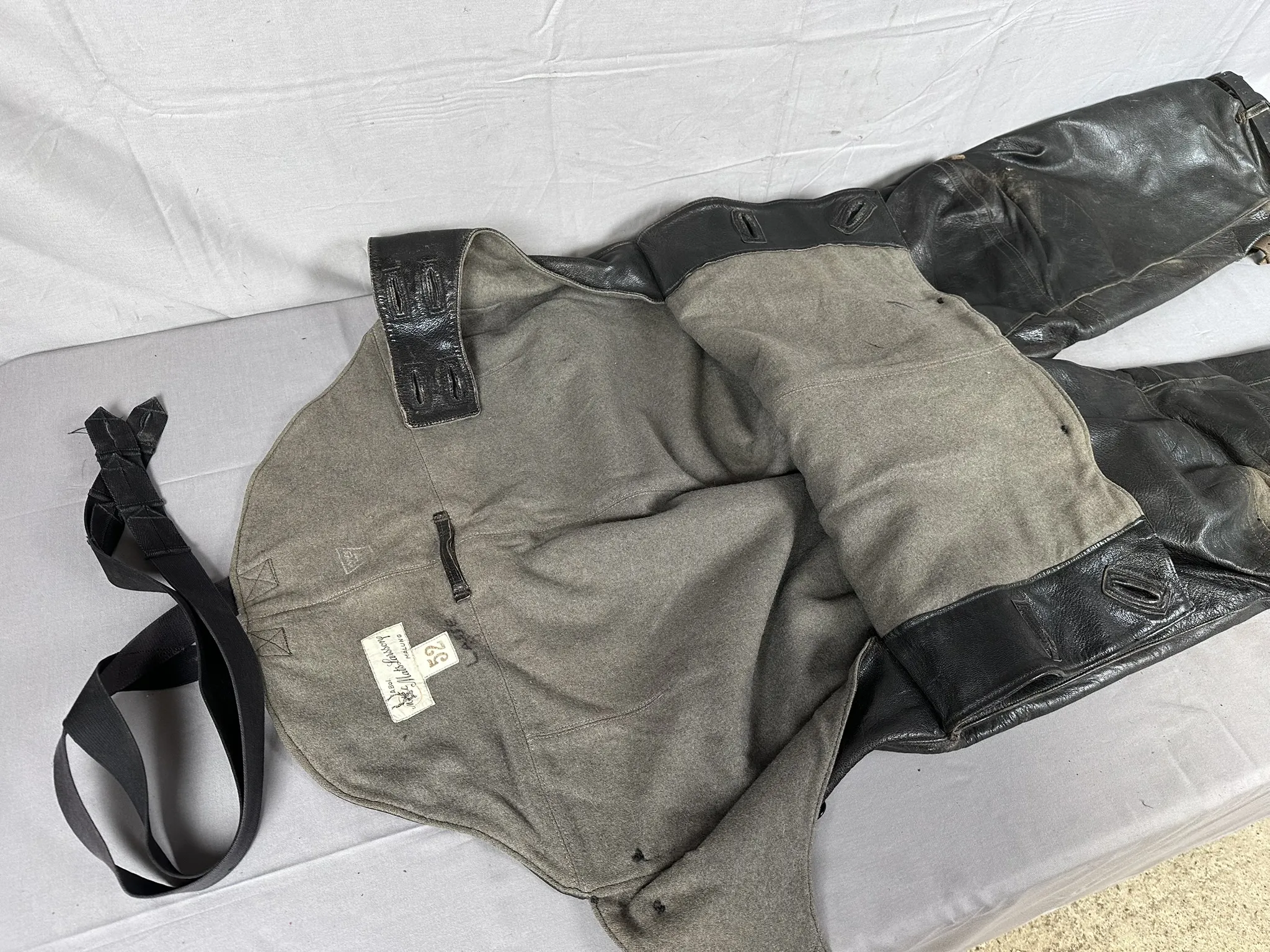Kondition: Jacka har åldersrelaterat slitage och skador på innerfoder, Byxor i bruksskick
