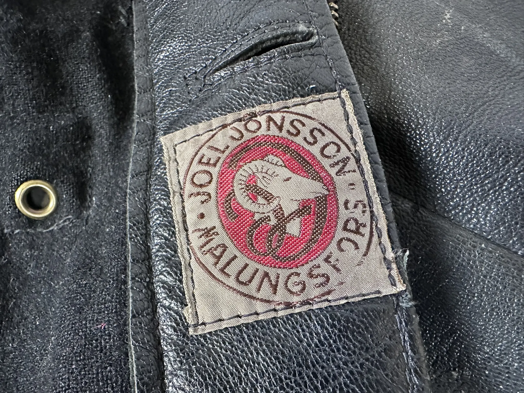 Skinnjacka märkt Joel Jonsson Malungsfors stl ca L, Hängselbyxor märkt Mats Larsson Malung, Kronan märkt, Strl 52