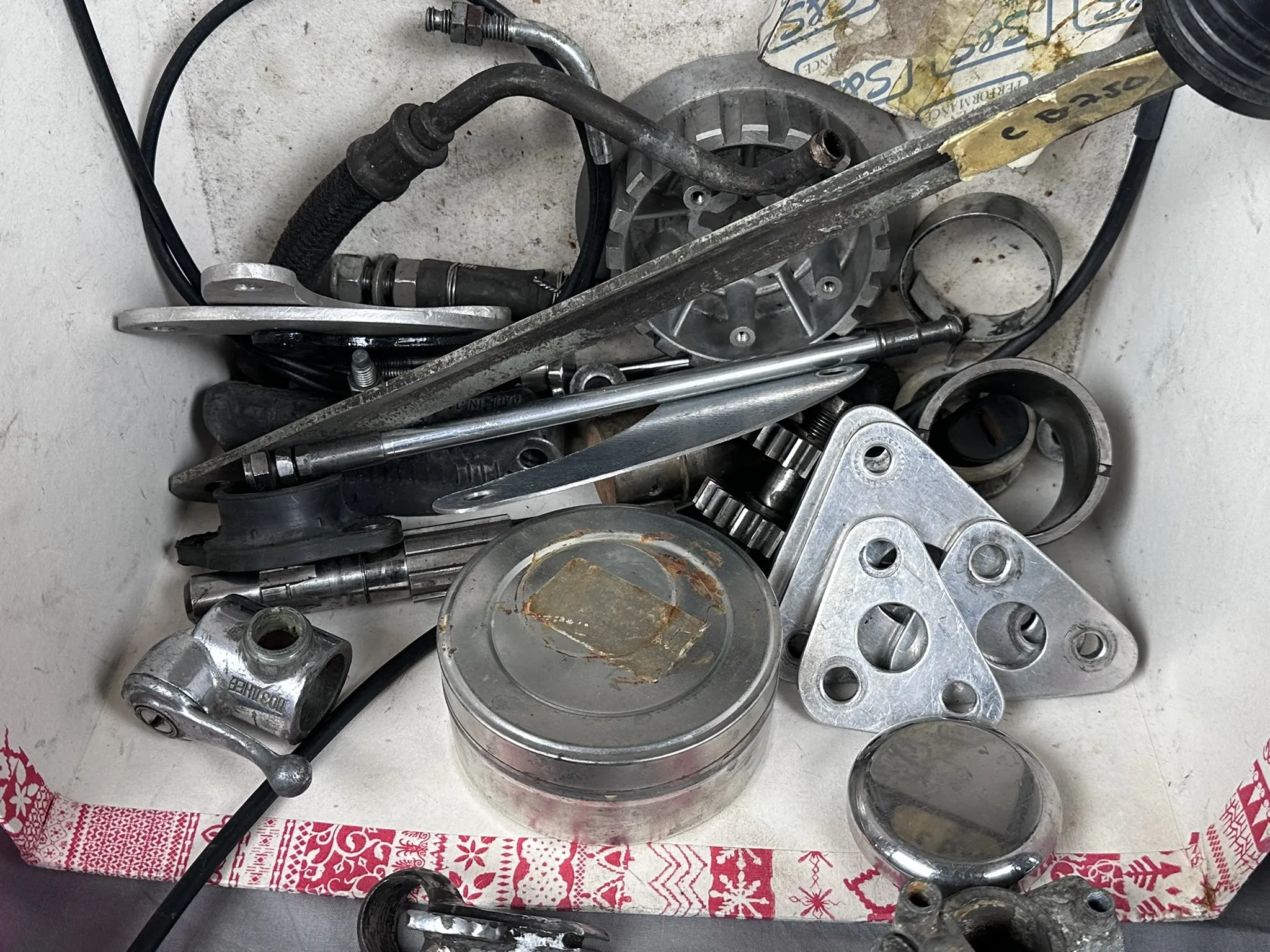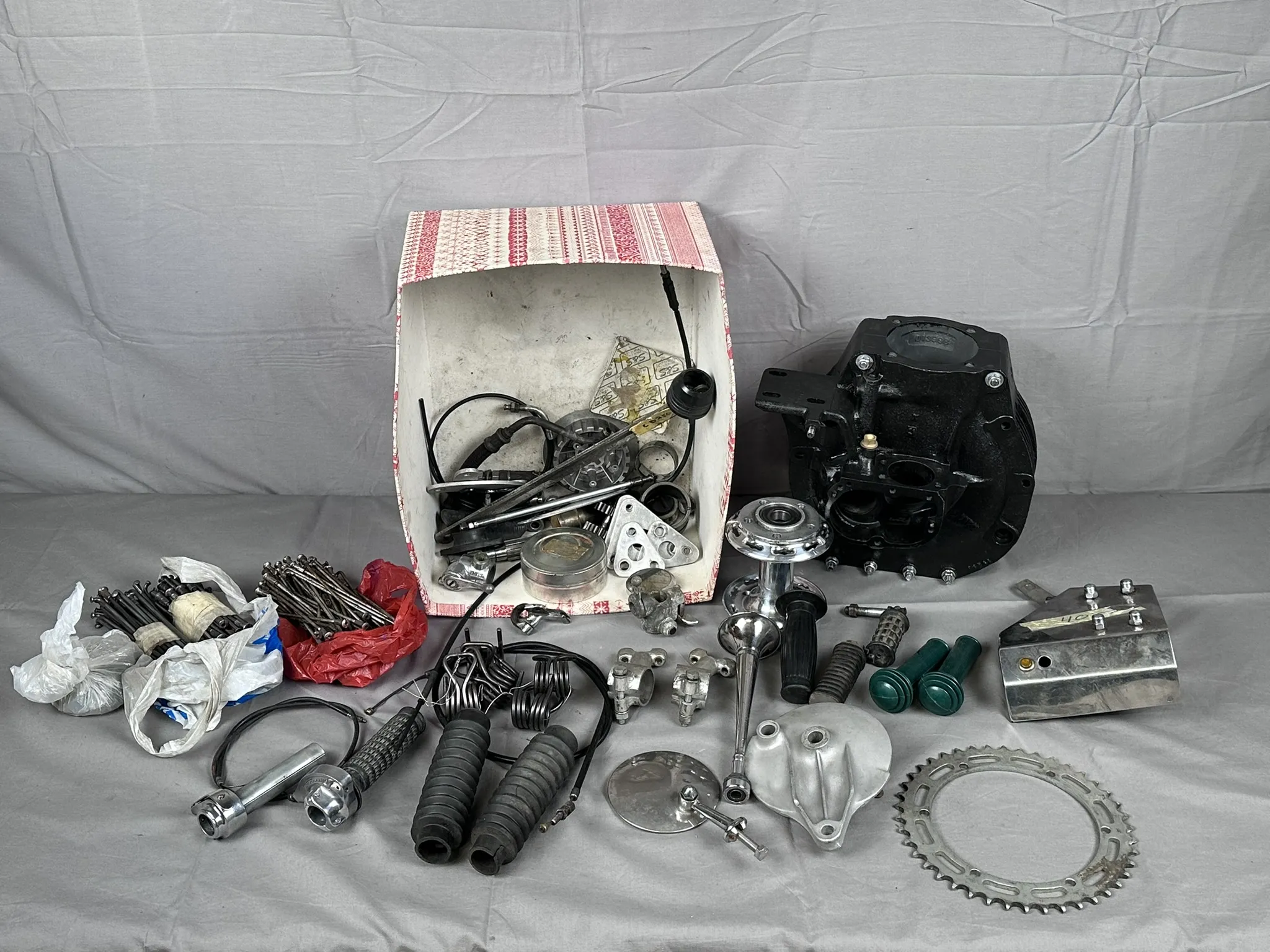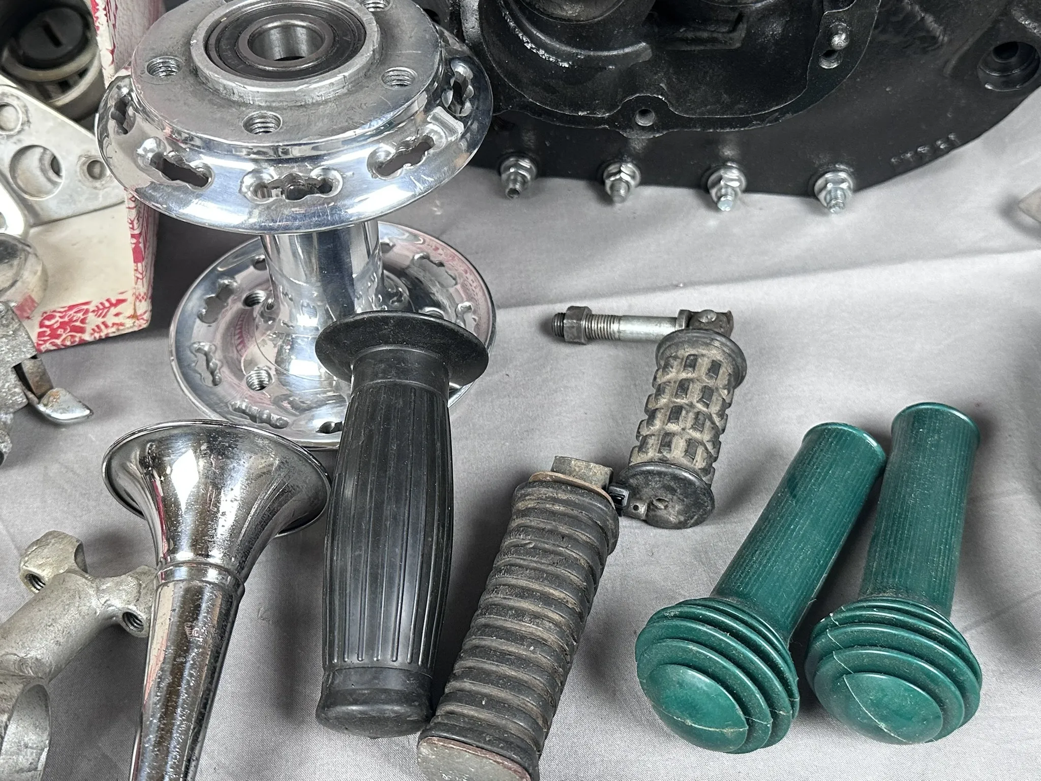 Bl.a Vevhus märkt: BA 37969, WS11 M 868", Ekrar, Handtag, Backspegel, Bromssköld, Nav m.m