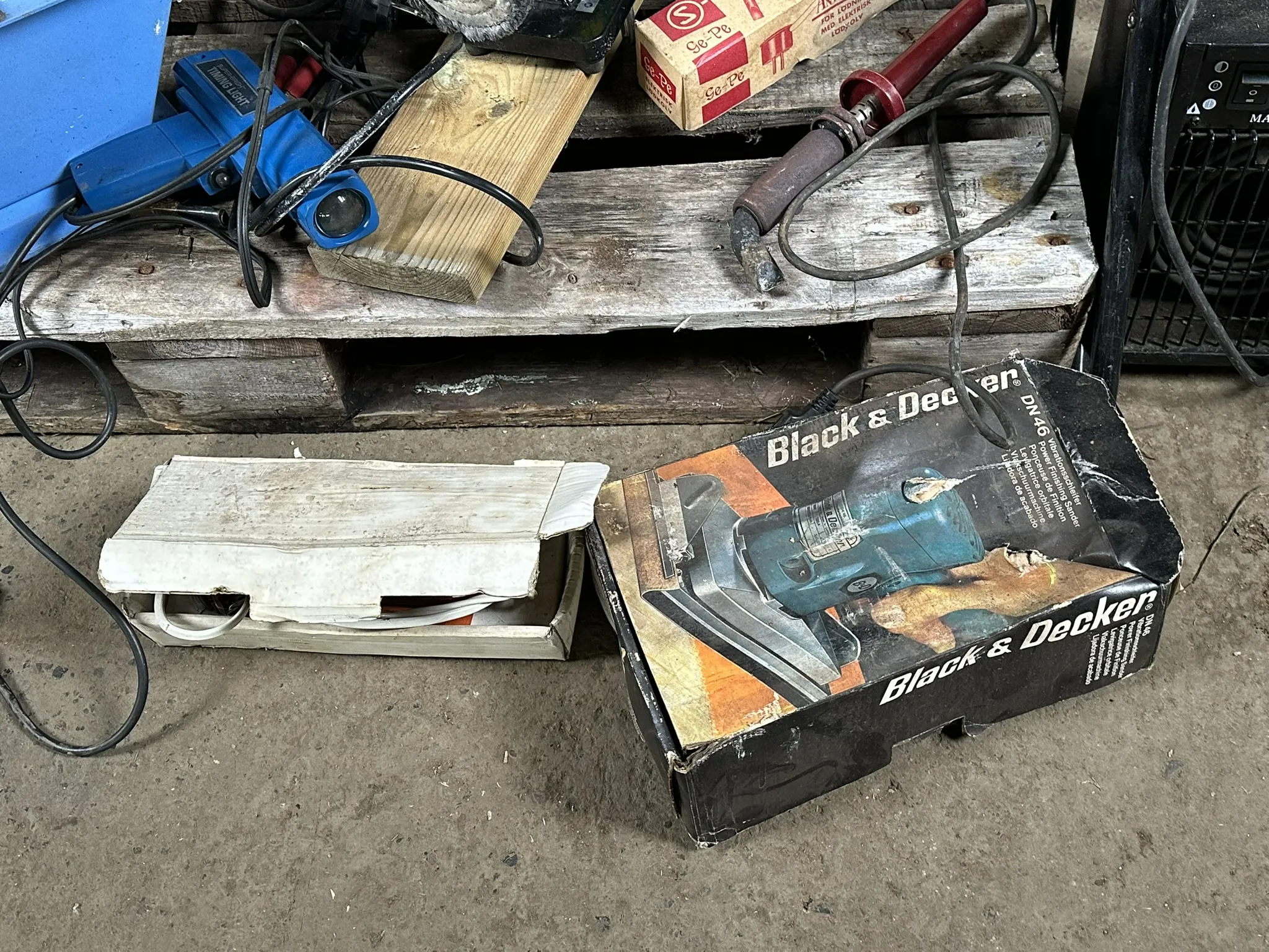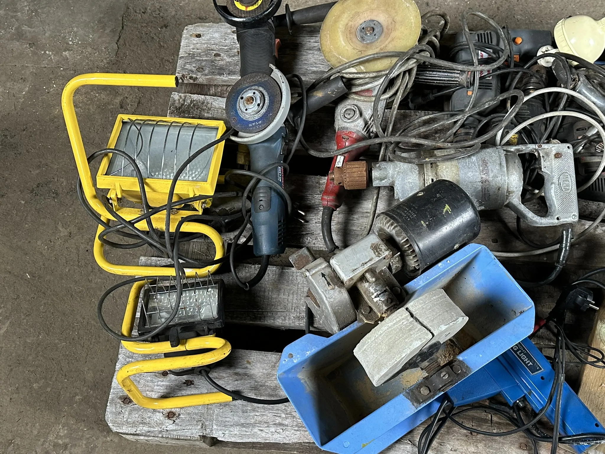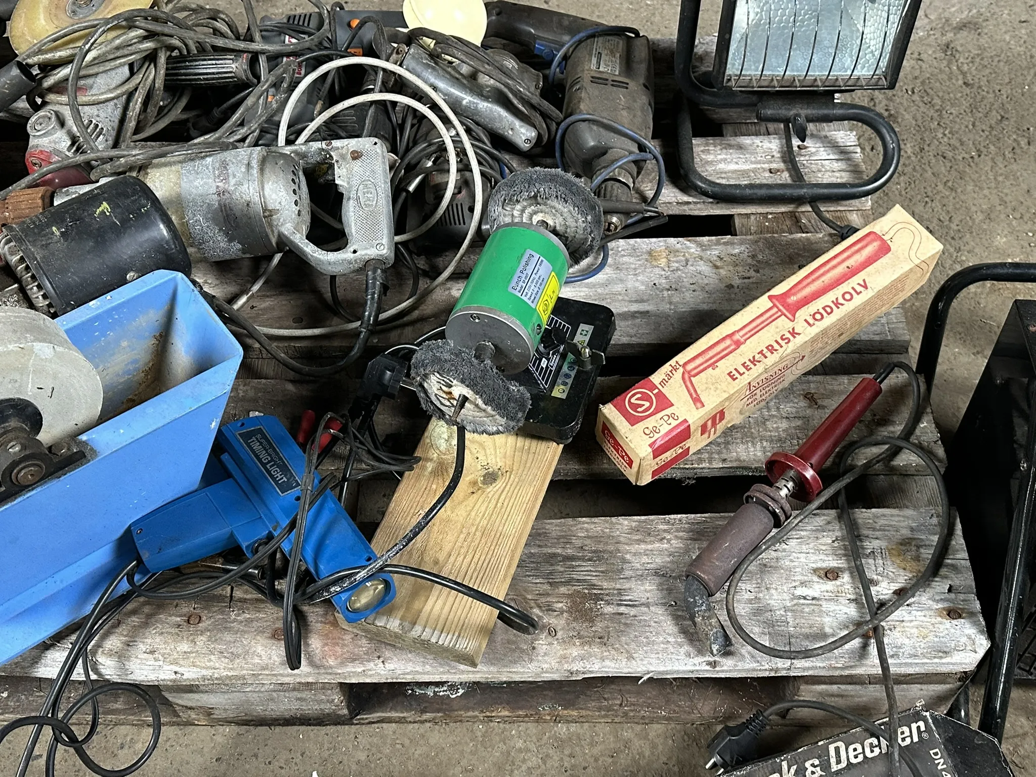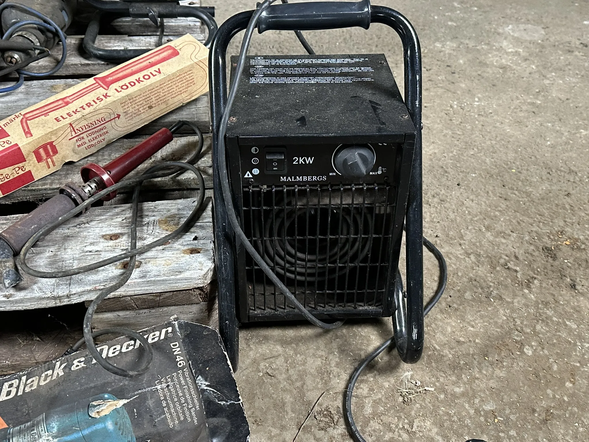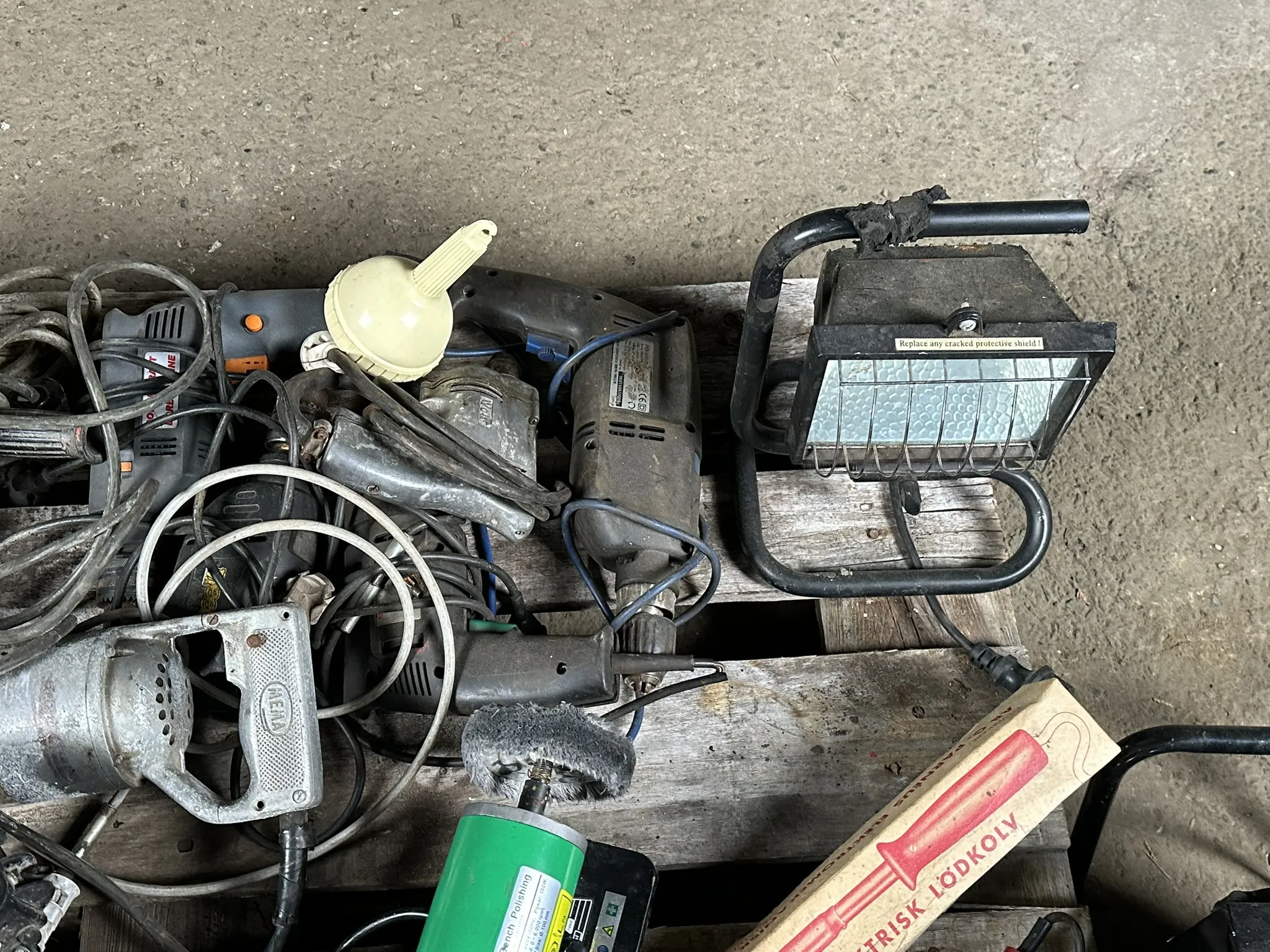 Parti innehållande bl.a 2kw Värmefläkt, Bänkpolermaskin, vinkelslipar, borrmaskiner m.m