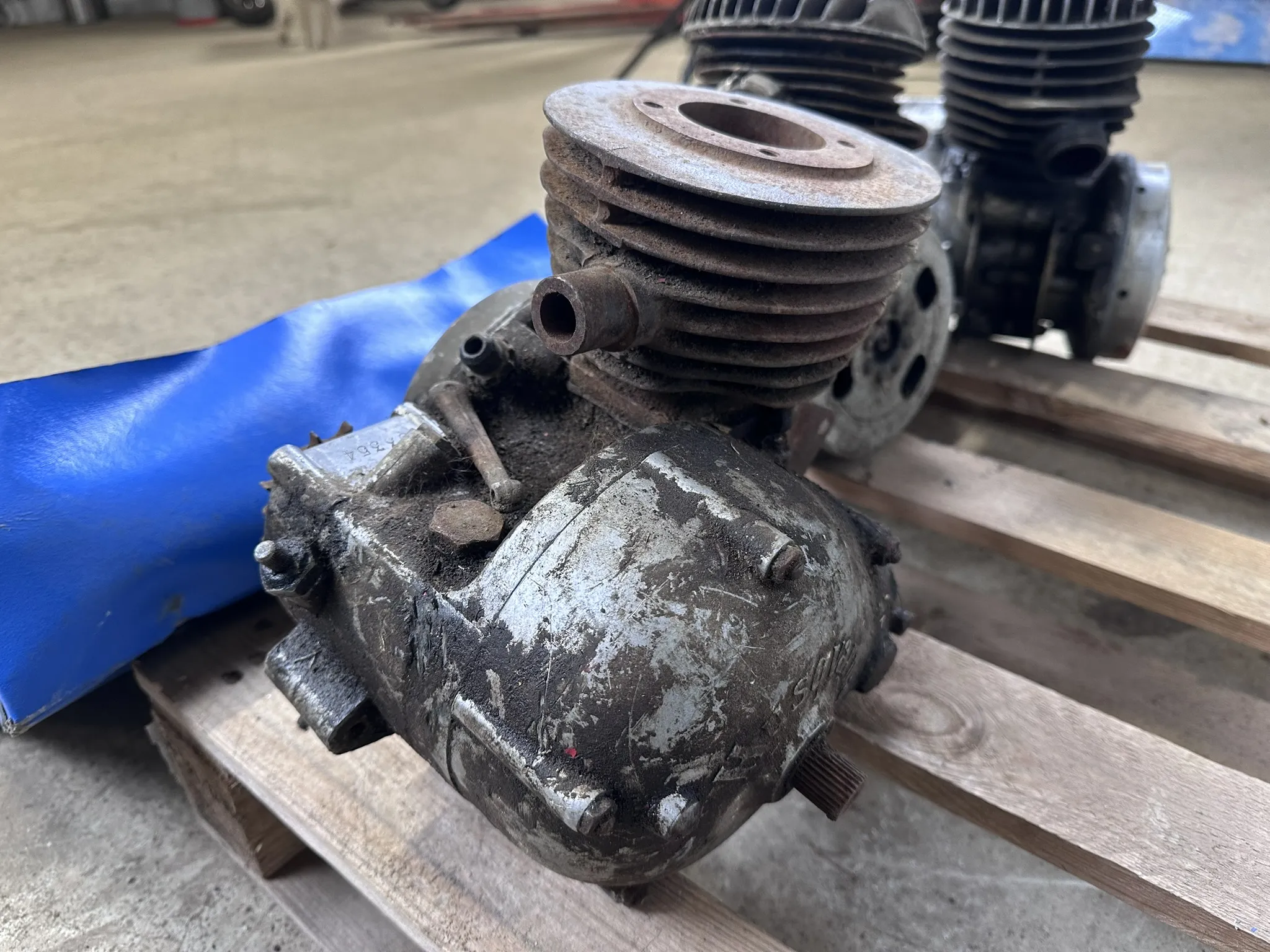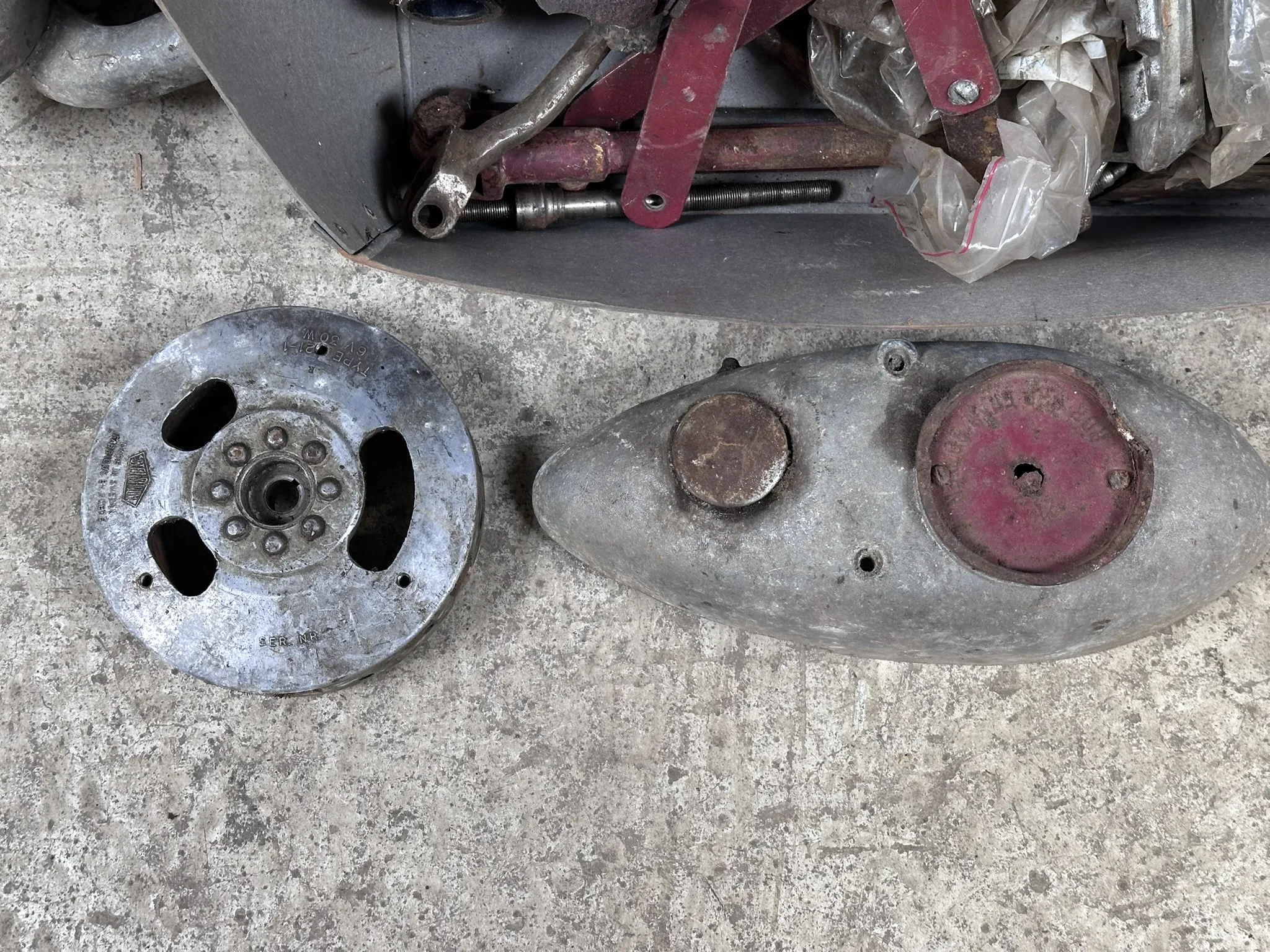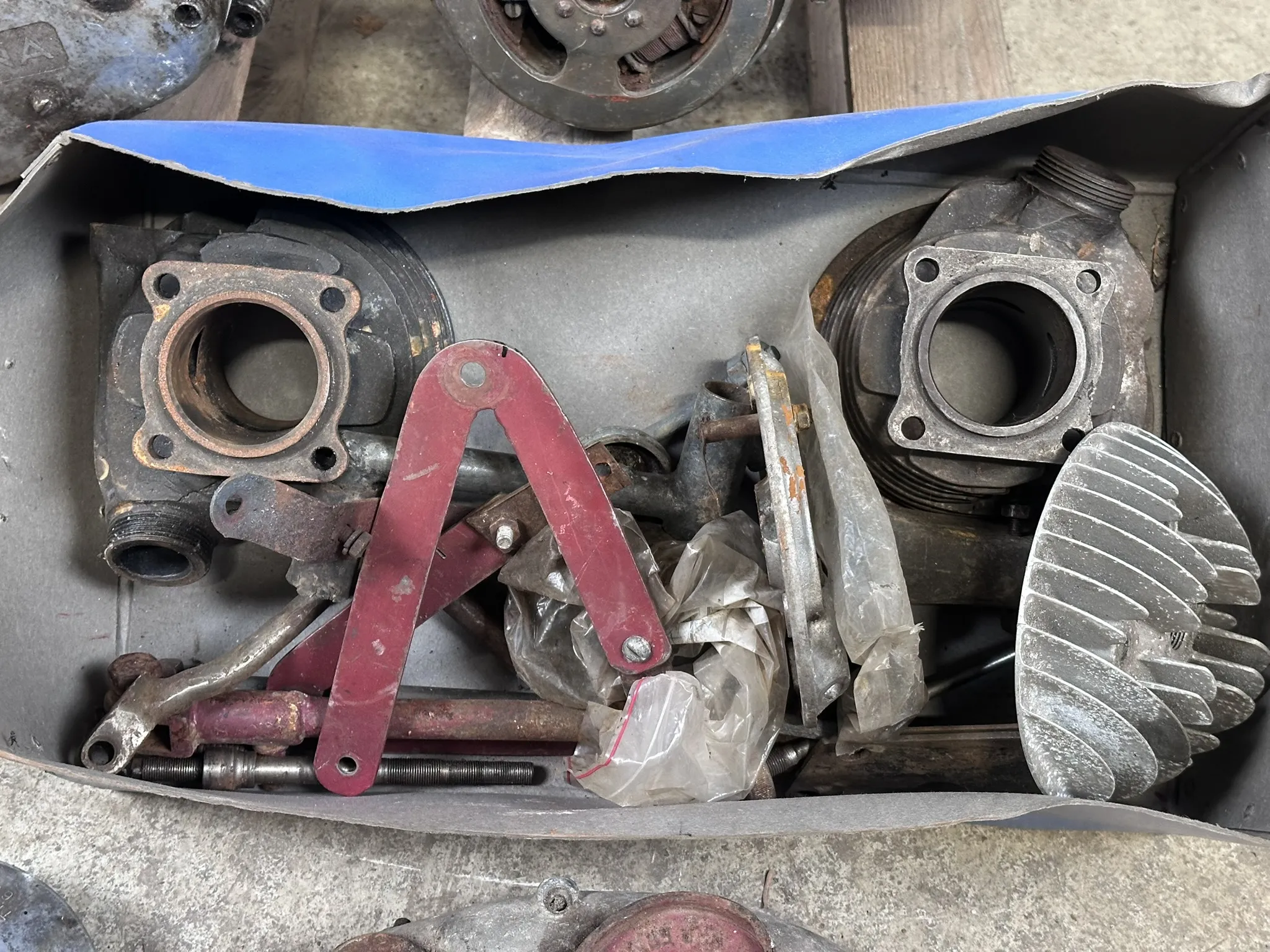 Bl.a 118cc Husqvarnamotor med motornr: 83311,118cc Husqvarnamotor med motornr: 63354, 98cc Husqvarnamotor med motornr: 41476, Svänghjul, cylindrar m.m
