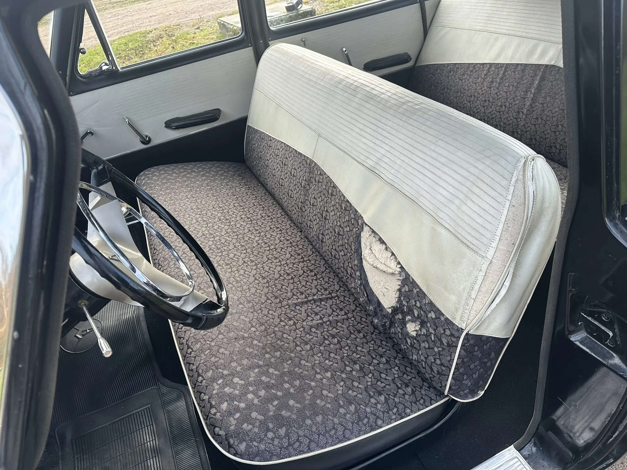 Kondition: Äldre omlackering, Rostskada vänster tröskel, Sätesklädsel förarplats skadad, liten repa (Från vindrutetorkare) i framrutan, Mindre lackskador, Går tyst och fint