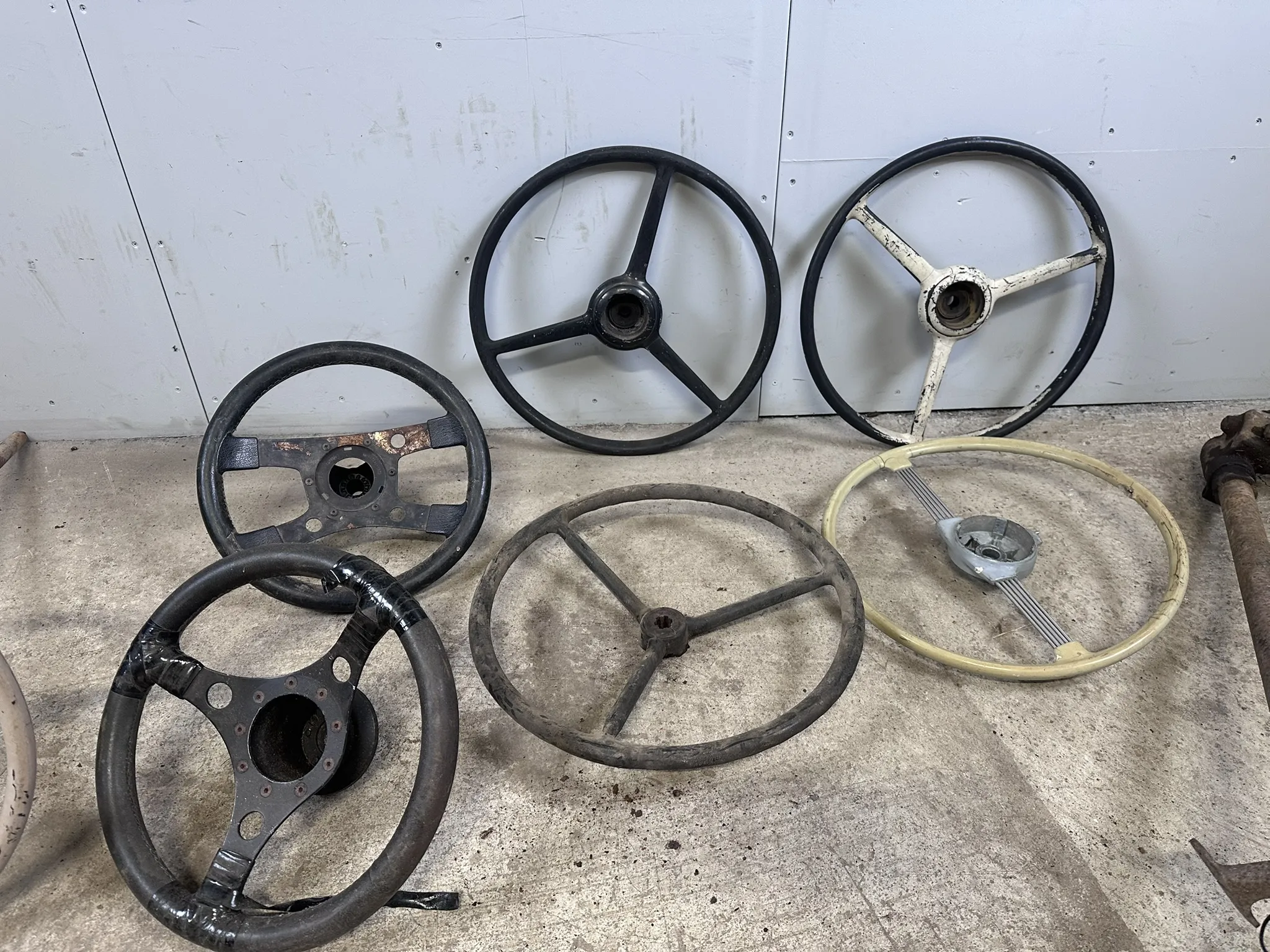 2st sportrattar med nav, passar troligen Volvo Amazon/240. Packard ratt med rattstång, 40-tal m.m.