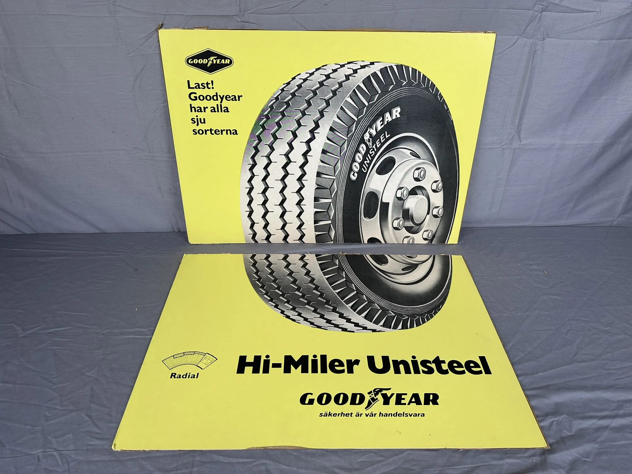 Kondition: Skador och fukt förekommer, GoodYear är trasig i två delar.
