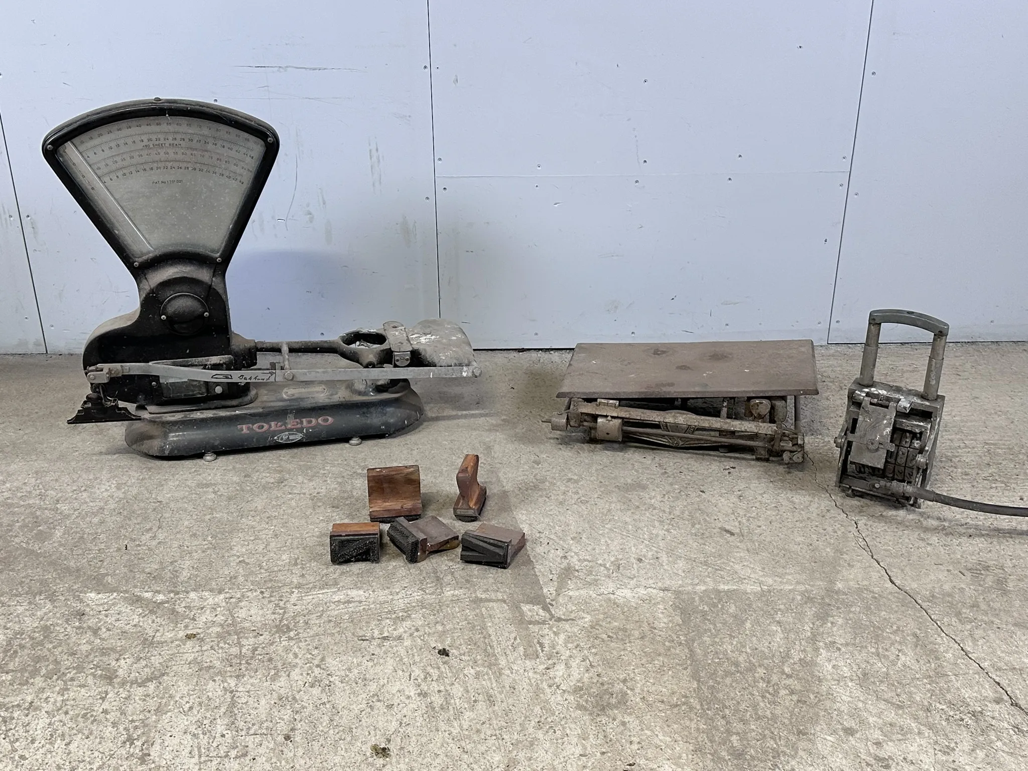 Våg märkt Toledo USA Modell 3210, Serienr: 301118, Våg Märkt Lindell Jönköping Sverige, 5st Stämplar märkta Nermans stämplar Karlstad Samt större omärkt stämpel