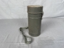 Kondition: Hjälm Har flertalet mindre bucklor repor slitage etc, Behållare för gasmask har lättare rostangrepp