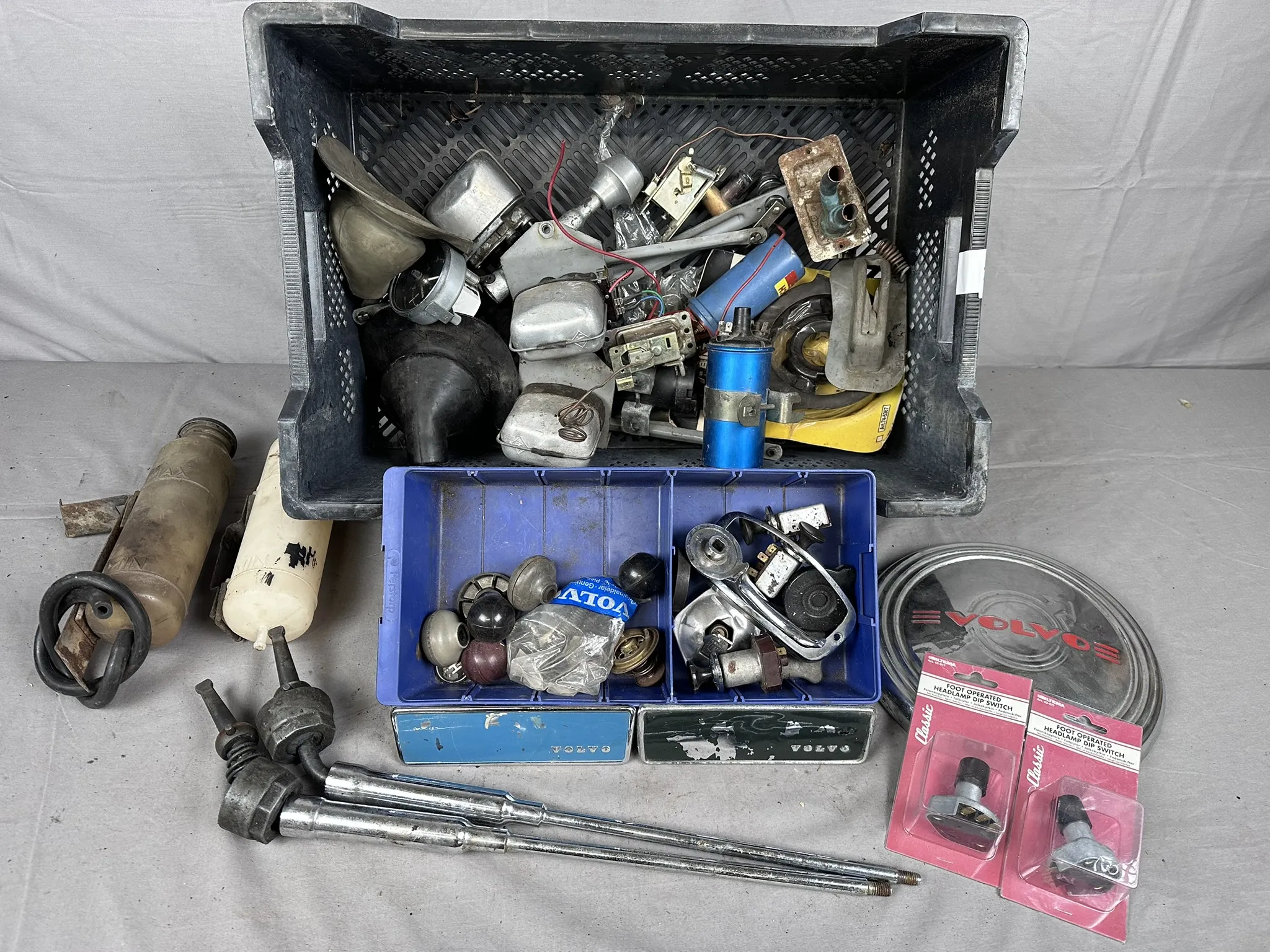 Bl.a Torkarmotorer, Radioluckor, Fot omkopplare, Klocka, Växelspakar, Damasker, Tändspolar, Värmeventiler m.m