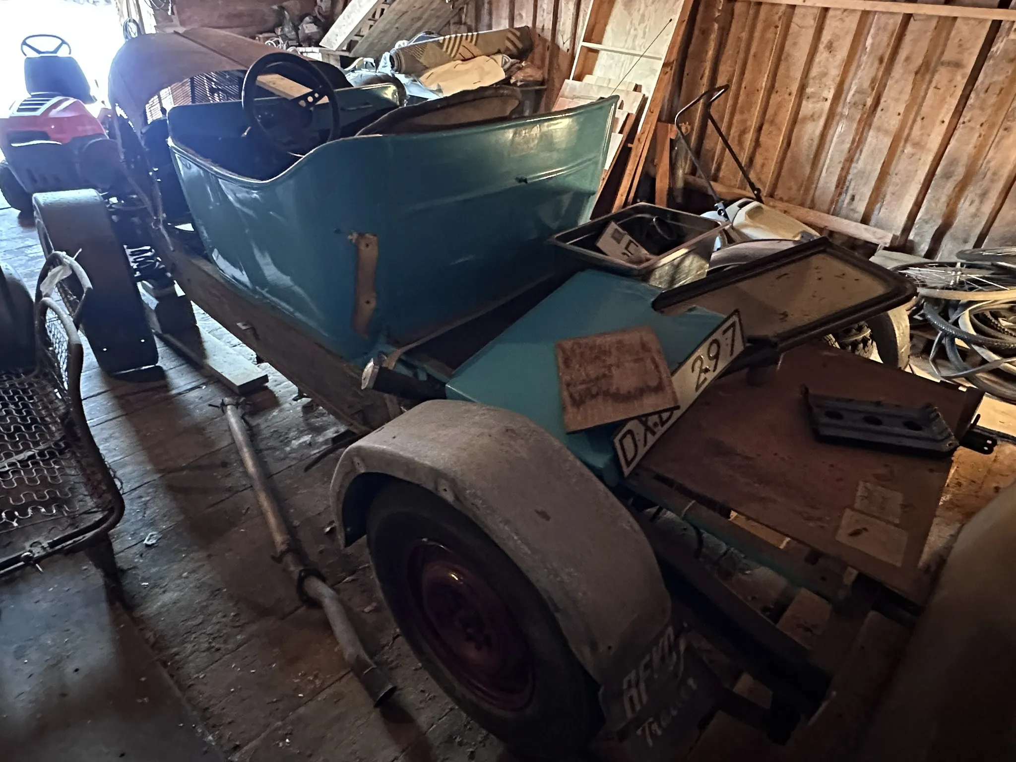 Övrigt: Plastkaross på förstärkt Volvo Duettram, Front och huv från Citroen löst påmonterat , Medföljer en mängd lösa delar bl.a Framvagn, 2st bakaxlar, Skärmar, 4st hjul, Framruta, Framvagnsdelar, Dragkrok