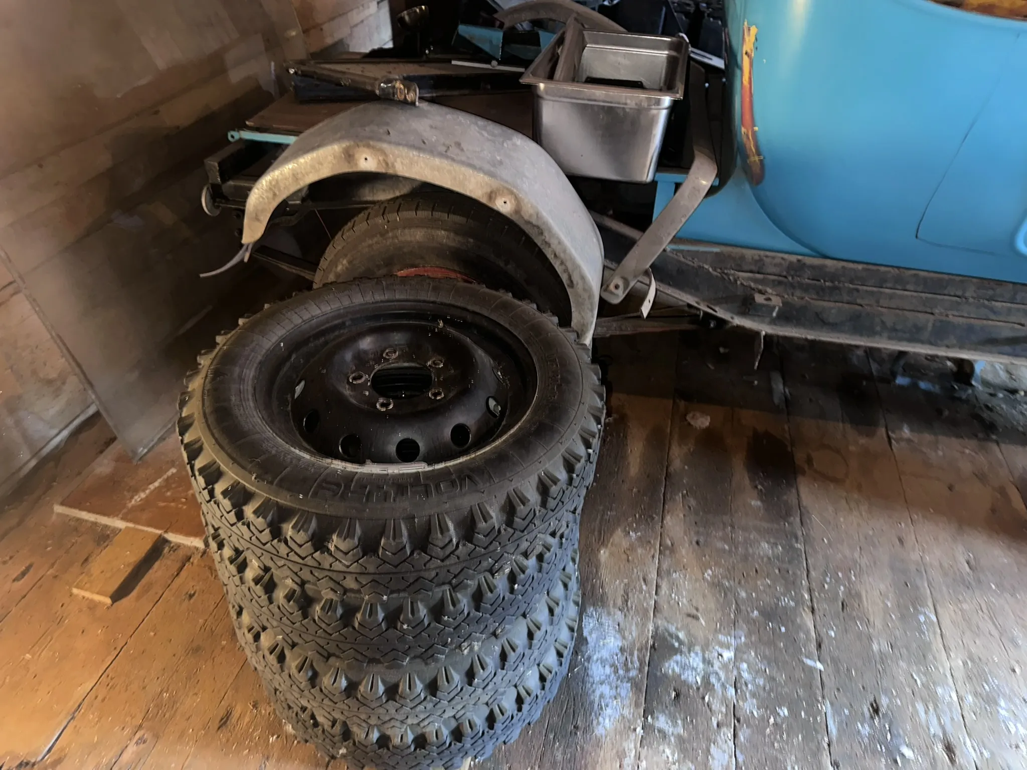 Däck: 15tum med plåtfälgar