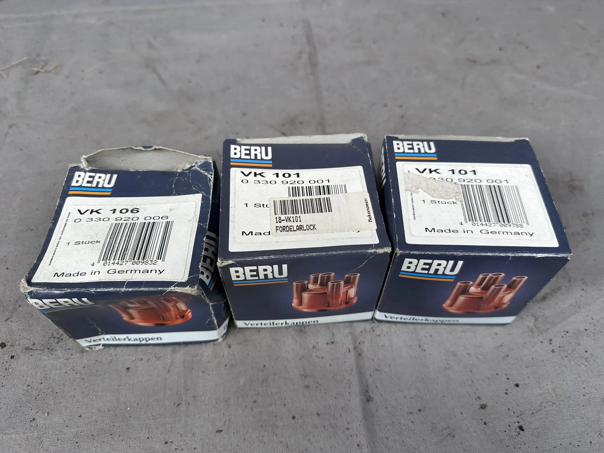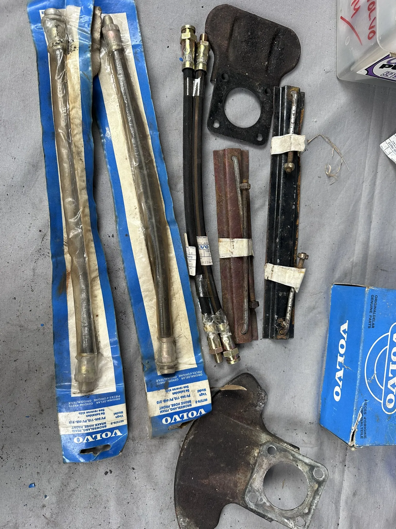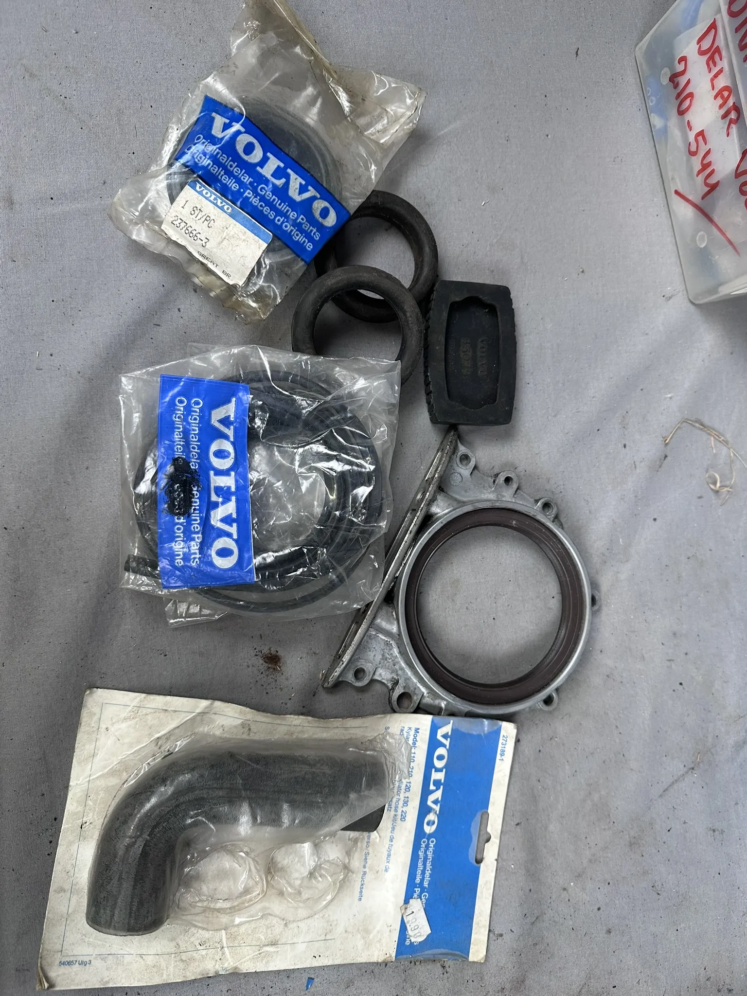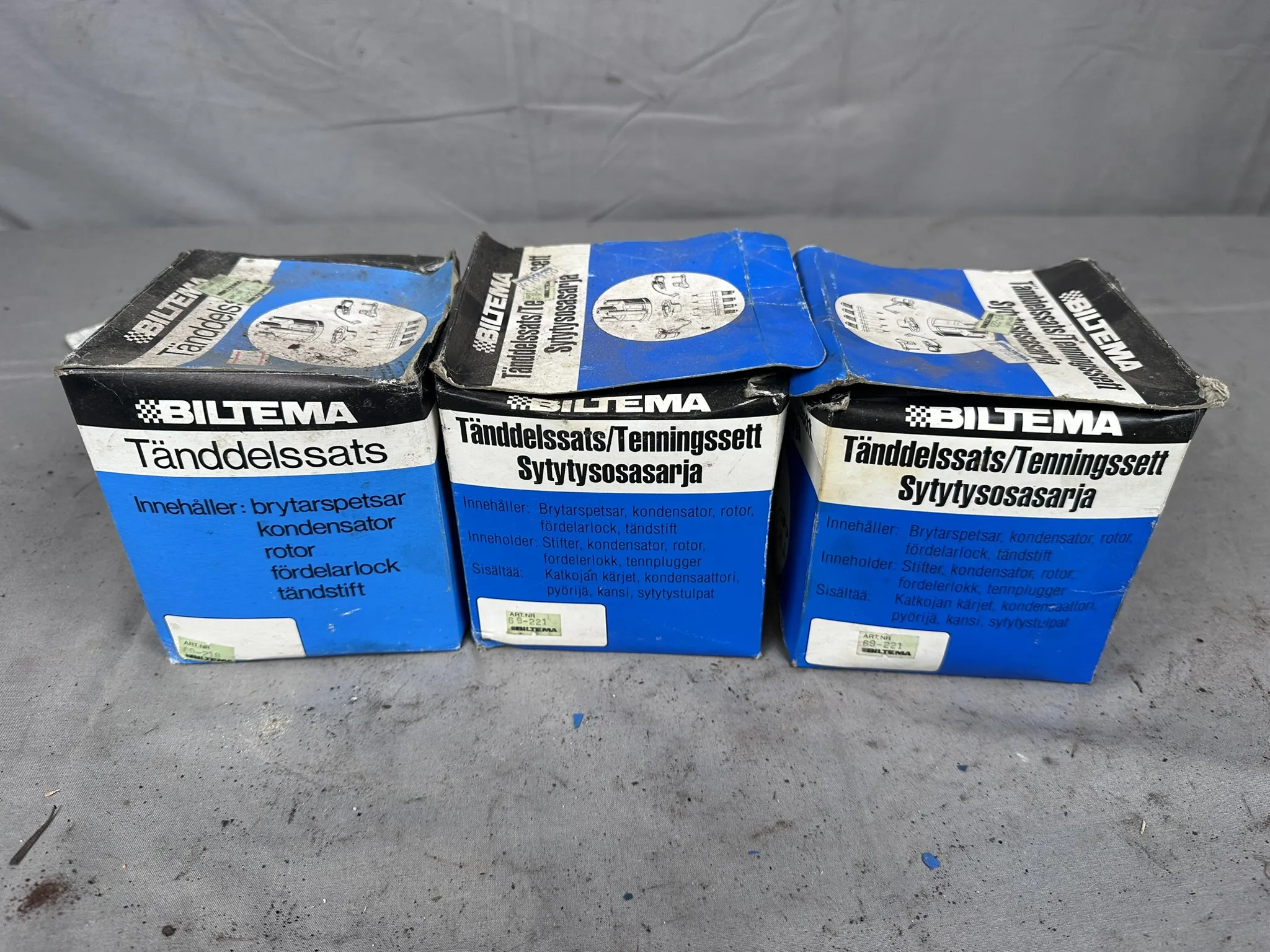 Bland annat: Navkapslar, Bromsljussats (NOS), Tänddelar, Oljefilter m.m.