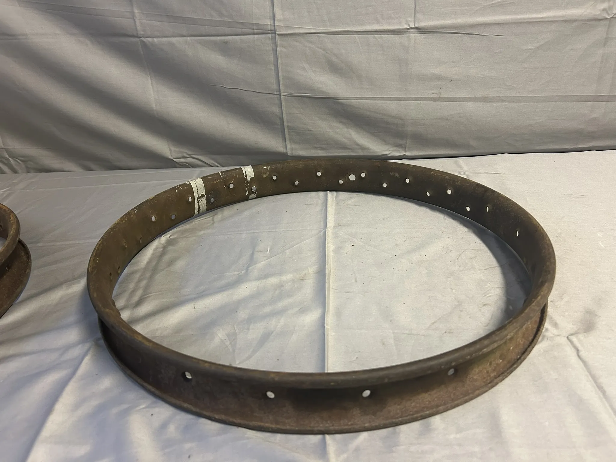 Båda har spår av grön färg så troligvis till Harley-Davidson 1920-tal. Båda fälgar är 26x3 fälgar med 40-hål.